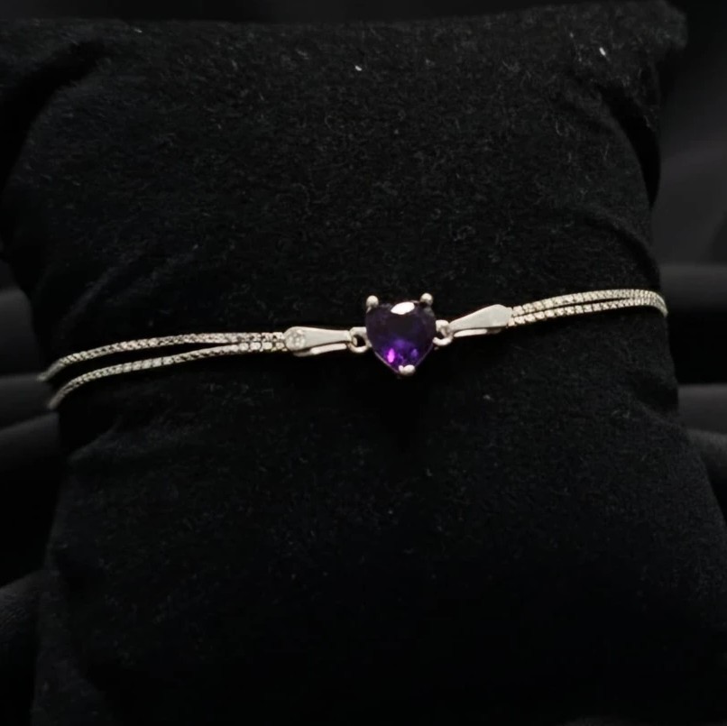 🔮 Ljubavna priča u ljubičastom: Srebrna narukvica sa kristalnim srcem