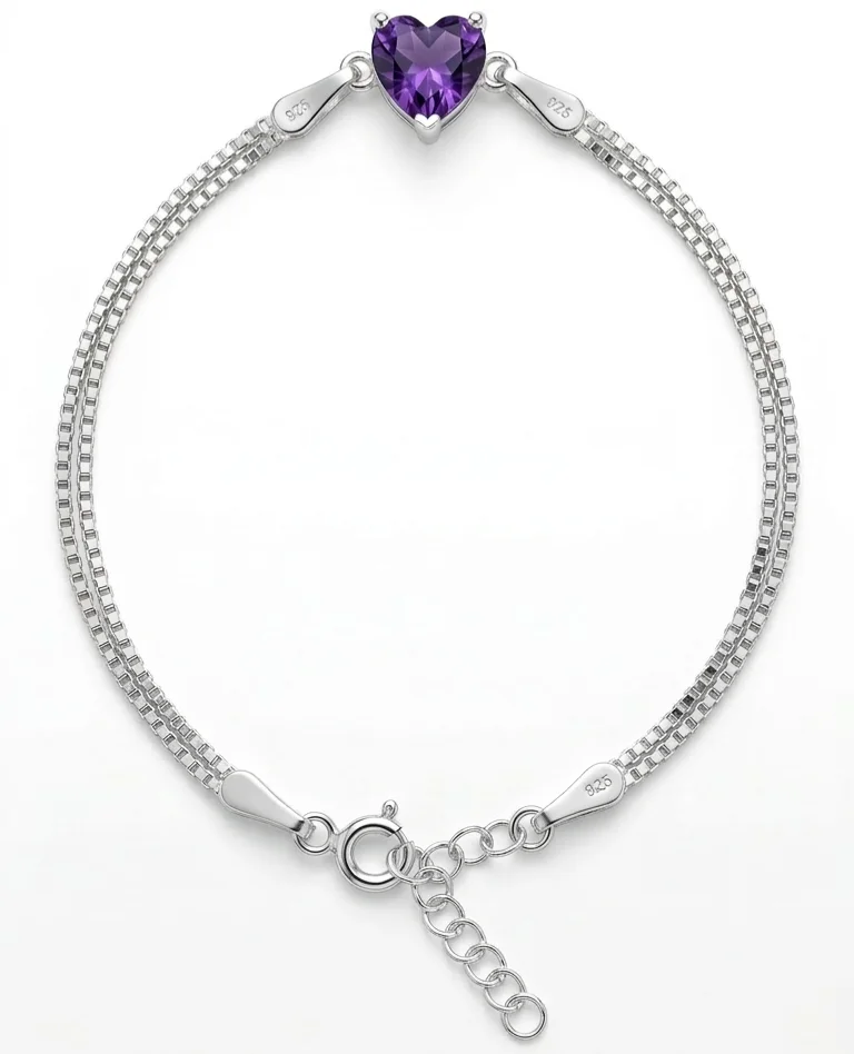 Dupla srebrna narukvica „Ametist Srce“ 925