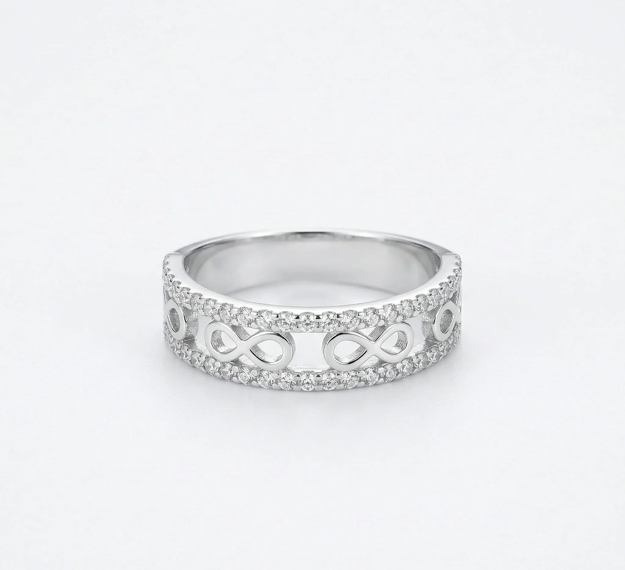 Srebrni Prsten sa Nizom Beskonačnosti Infinity Line – Večna Svetlucava Sofisticiranost na Vašoj Ruci
