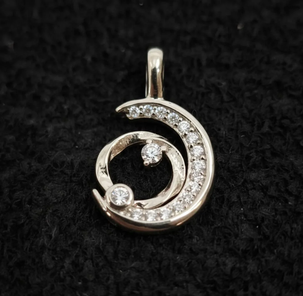 Srebrni privezak Polumesec sa zvezdanom prašinom, finoće 925.