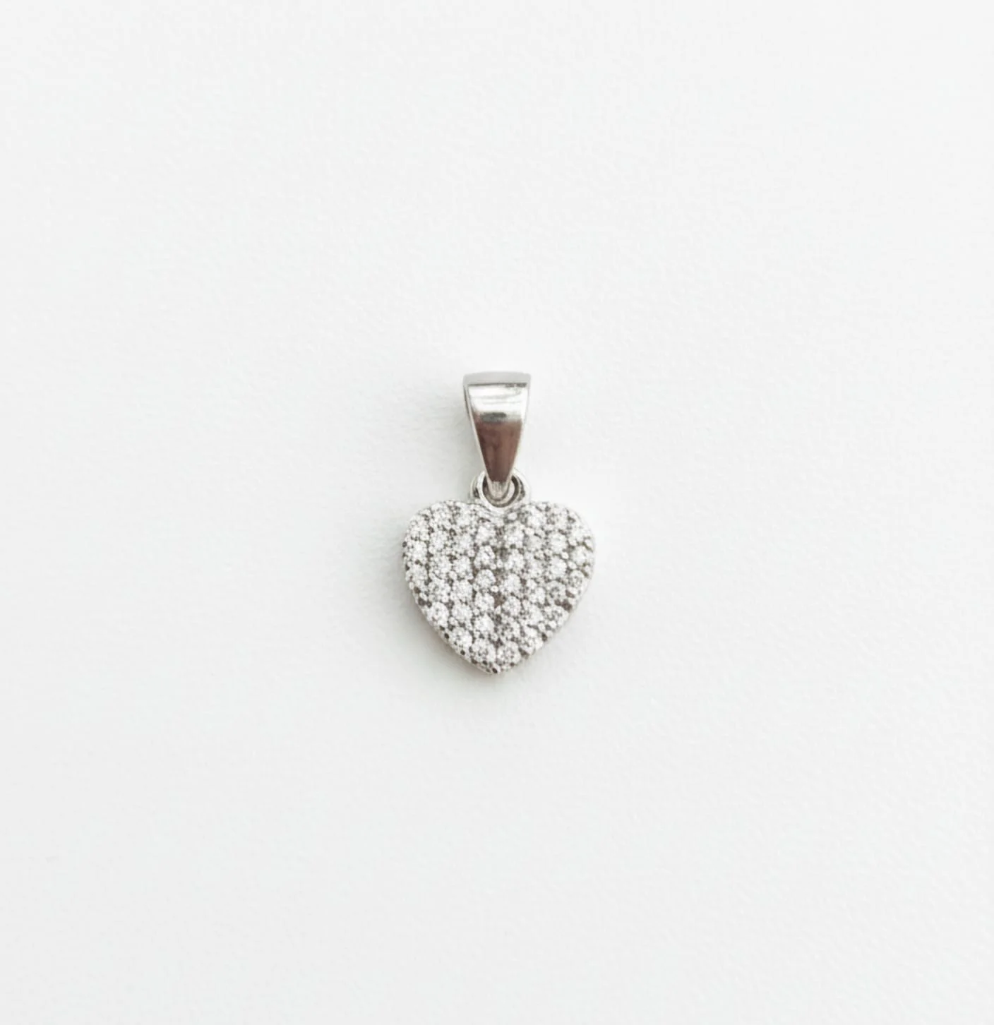 Srce je oblikovano sa punim, zaobljenim linijama. Ono što ga izdvaja je tehnika ukrašavanja: celokupna prednja površina prekrivena je sitnim, precizno ugrađenim kubnim cirkonima. Cirkoni su pažljivo postavljeni (pavé tehnika) kako bi maksimizovali refleksiju svetlosti, čineći da privezak sija kao pravi dijamanti.