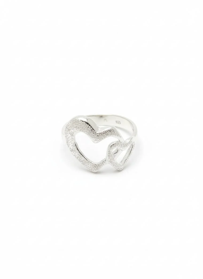Glavna karakteristika ovog modela je „brušena“ ili mat završna obrada koja srebru daje baršunast izgled i jedinstvenu taktilnu vrednost. Dizajn prstena čine dva spojena srca različitih veličina koja su harmonično uklopljena u samu šinu prstena. Veće srce dominira svojom teksturom, dok se manje srce nadovezuje na njega, simbolizujući neraskidivu povezanost i bliskost. Ovakav „otvoreni“ dizajn motiva daje prstenu vizuelnu lakoću i savremen izgled. Svaki detalj na ovom Srebrnom prstenu „Brušena srca“ 925 pažljivo je ručno obrađen kako bi se postigao savršen mat efekat.