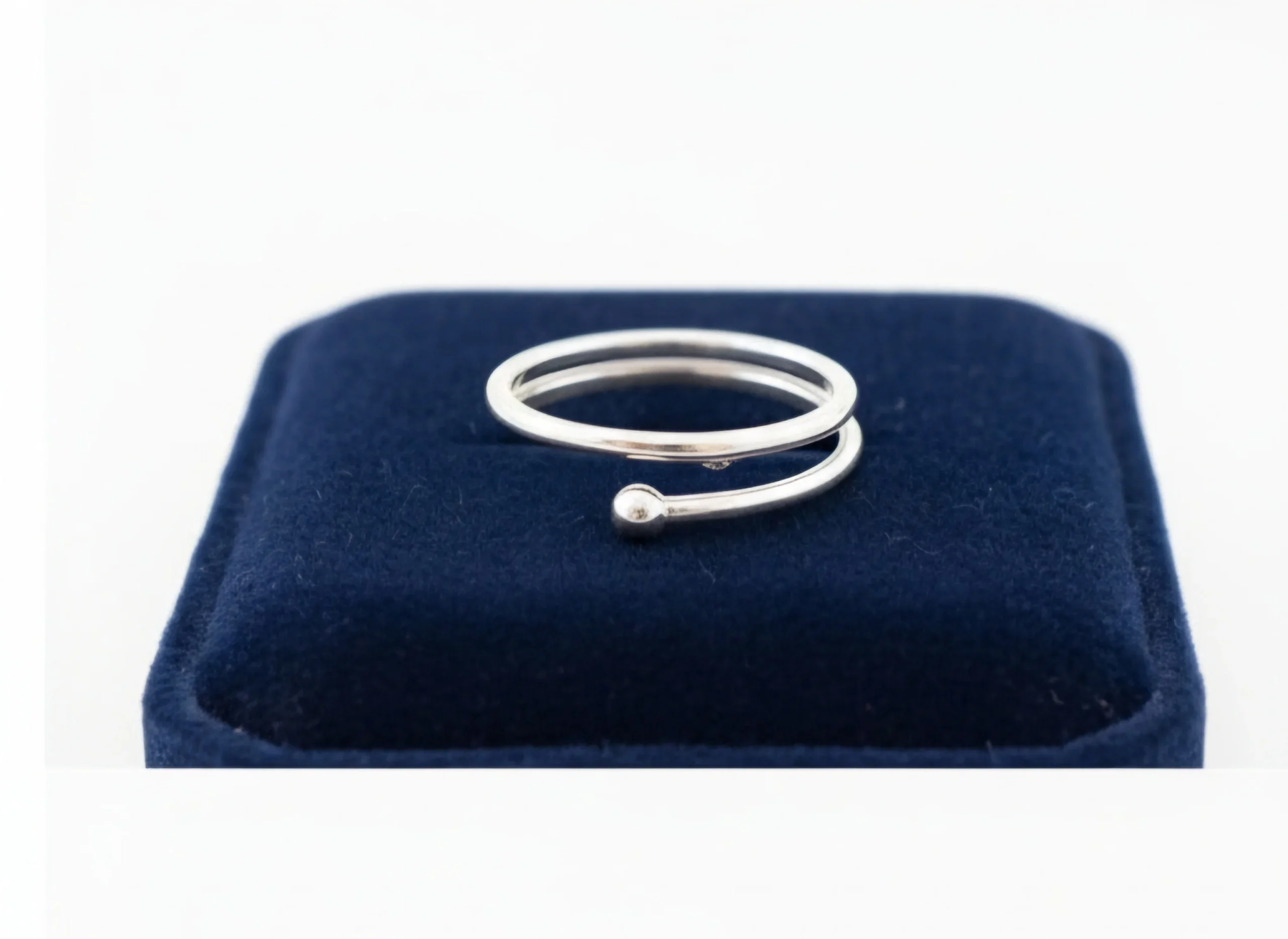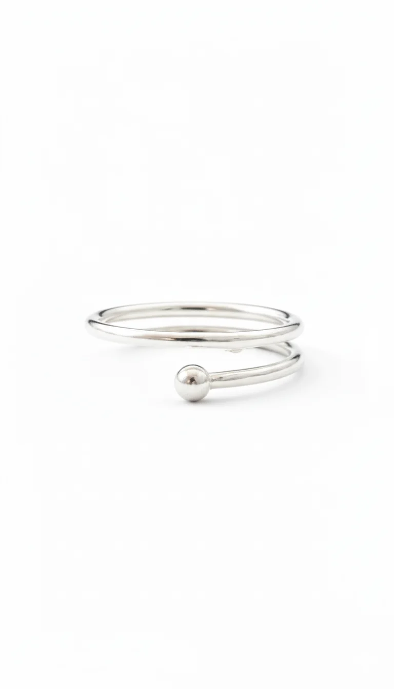 Glavna karakteristika ovog modela je njegova specifična geometrijska forma. Prsten se sastoji od dve paralelne srebrne linije koje se spiralno uvijaju oko prsta, stvarajući privid dva zasebna prstena. Na jednom kraju, linija se završava savršeno glatkom srebrnom kuglicom, koja služi kao diskretan, ali efektan ukrasni detalj. Ova asimetrija daje Srebrnom prstenu Dupla linija 925 moderan karakter koji se savršeno uklapa u popularne trendove slaganja nakita (layering).
