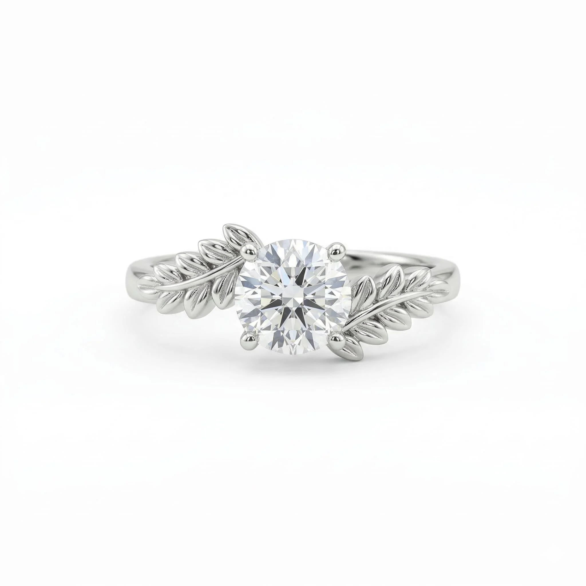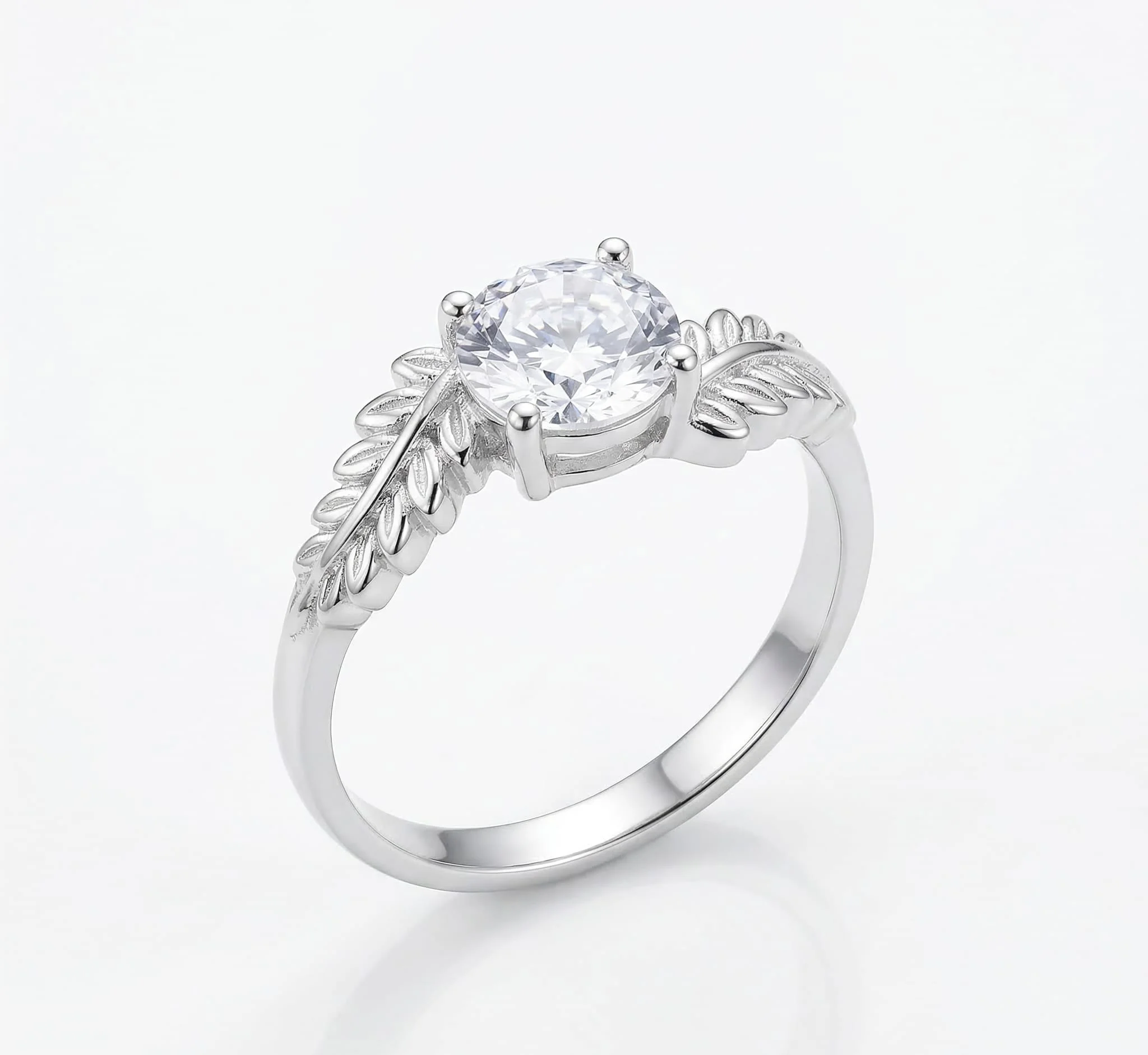 Glavna zvezda ovog modela je krupni, precizno brušeni centralni cirkon koji dominira dizajnom i hvata svetlost iz svakog ugla. Ono što ovaj prsten čini zaista posebnim su bočni detalji – obruč je ukrašen nežnim, reljefnim listićima koji se pružaju ka kamenu, dajući celom izgledu romantičnu i organsku notu.