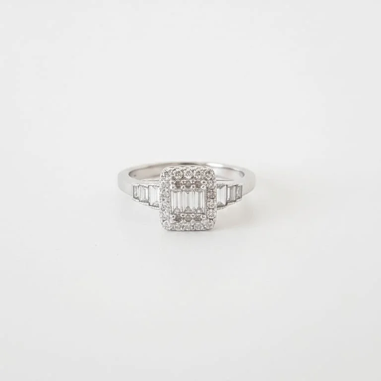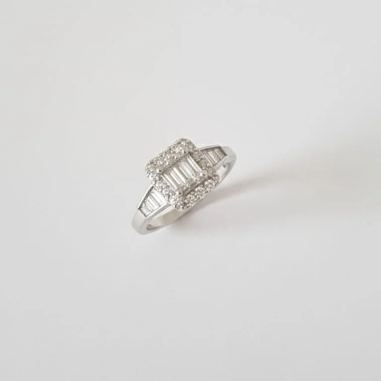 Osnova prstena je napravljena od sertifikovanog srebra 925, koje je polirano do ogledalskog sjaja. Ono što ovaj model čini posebnim su baguette sečeni cirkoni koji se stepenasto spuštaju niz obruč prstena. Ova tehnika sečenja naglašava dubinu kristala i pruža prstenu sofisticiran, „prestižan“ izgled koji se retko viđa kod srebrnog nakita. Zahvaljujući preciznoj izradi, kamenje je sigurno ugrađeno, dok je unutrašnjost prstena glatka i ergonomski oblikovana za vrhunsku udobnost.