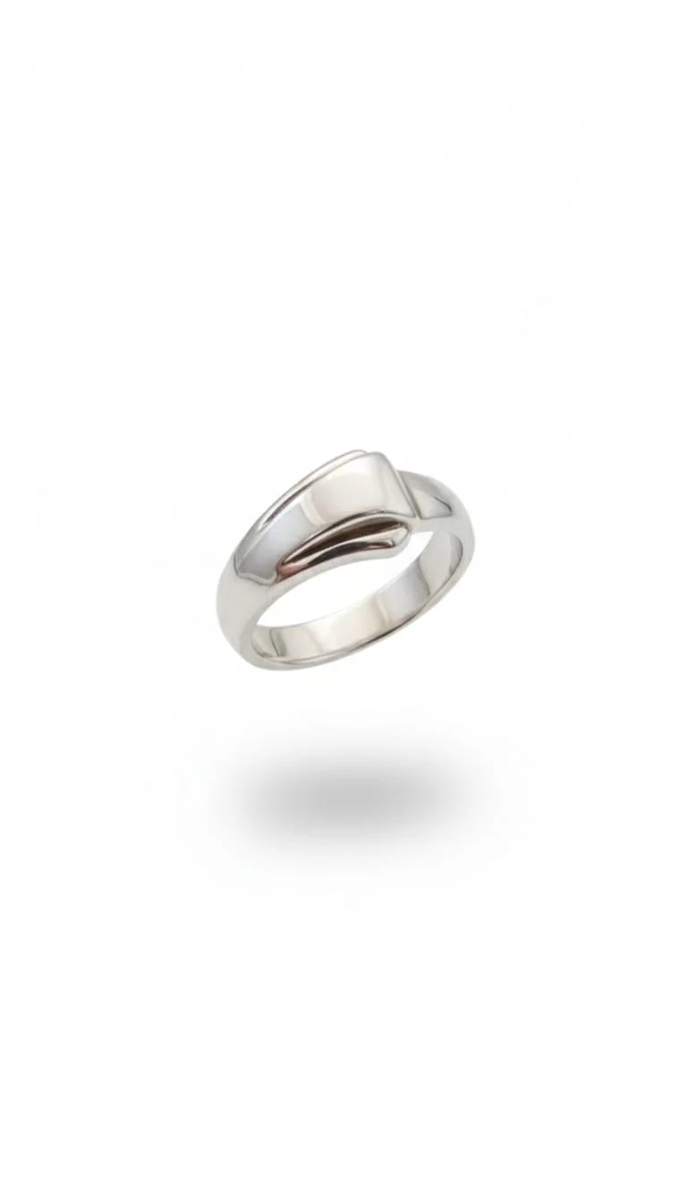 Glavna karakteristika ovog modela je njegova asimetrična forma koja prkosi tradicionalnim oblicima prstenja. Gornji deo prstena se elegantno izvija i preklapa, stvarajući dinamičan vizuelni efekat koji podseća na tečni metal. Cela površina je polirana do savršenstva, bez dodatnih ukrasa ili kamenčića, čime se akcenat stavlja na samu formu srebra. Ovakav „clean“ dizajn čini Srebrni prsten sa zakrivljenim gornjim delom 925 izuzetno modernim i sofisticiranim.