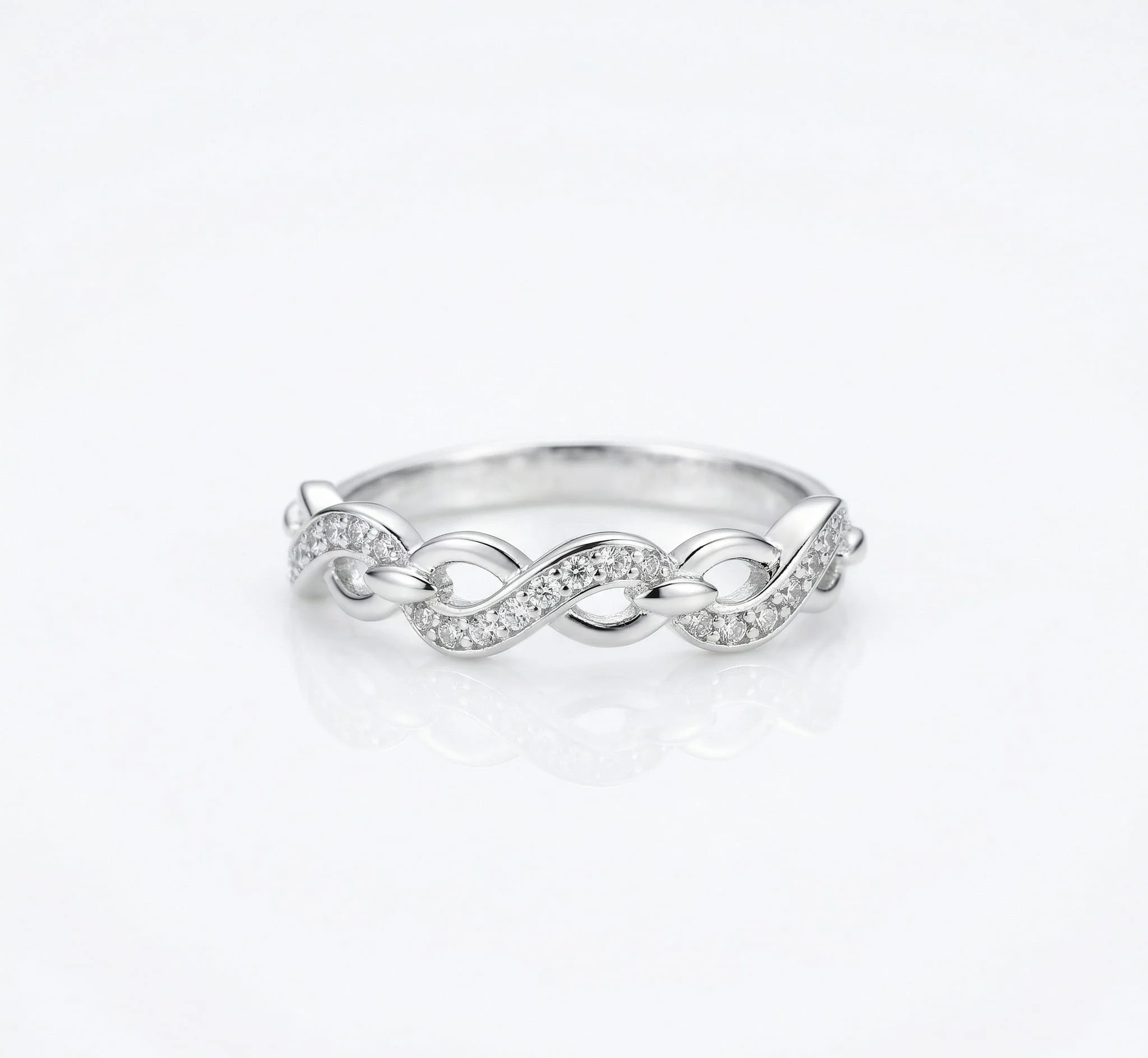 Unesite prefinjenost u svoj stil uz naš unikatni srebrni prsten sa motivom beskonačnosti pod nazivom „Zauvek“. Ovaj komad nakita je izrađen od vrhunskog sertifikovanog srebra finoće 925. Zbog toga vam garantujemo dugotrajan sjaj i izuzetan kvalitet. Dizajn karakterišu isprepletene linije koje formiraju elegantan niz simbola večnosti. Polovina motiva je ukrašena sjajnim cirkonima. Na taj način postižemo savršen balans između luksuza i svedenosti. Takođe, ovaj prsten je idealan dodatak za svaku damu koja voli nakit sa dubljim značenjem.