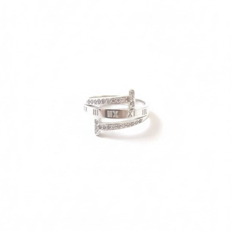 Ukoliko tražite nakit koji odiše snagom i elegancijom, naš srebrni prsten sa rimskim brojevima „Zlatni kod“ je pravi izbor. Ovaj prsten nije samo modni detalj, već pravi iskaz stila. Njegov dizajn je inspirisan klasičnom estetikom, ali je prilagođen modernoj ženi. Prsten se sastoji od nekoliko isprepletanih nivoa. Na jednom nivou nalaze se ugravirani rimski brojevi, dok su ostali delovi optočeni blistavim cirkonima.
