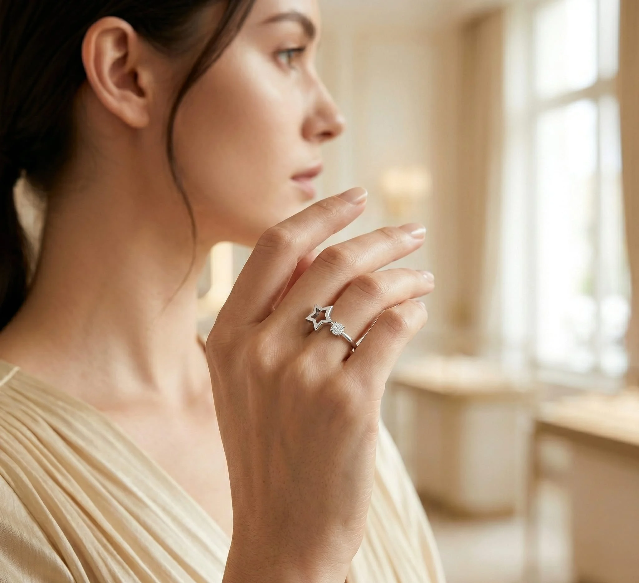Posebno smo vodili računa o kvalitetu izrade. Materijal je potpuno hipoalergen i bezbedan za vašu kožu. Prsten je veoma lagan, pa ga nećete ni osetiti na prstu tokom dana. Fina završna obrada osigurava postojan sjaj srebra. Svaki detalj na zvezdi i cirkonu je pažljivo obrađen. Zato ovaj komad nakita izgleda luksuzno i prefinjeno u svakoj prilici.